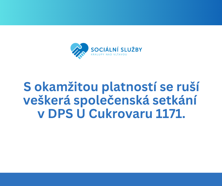 S okamžitou platností se ruší veškerá společenská setkání v DPS U Cukrovaru 1171.