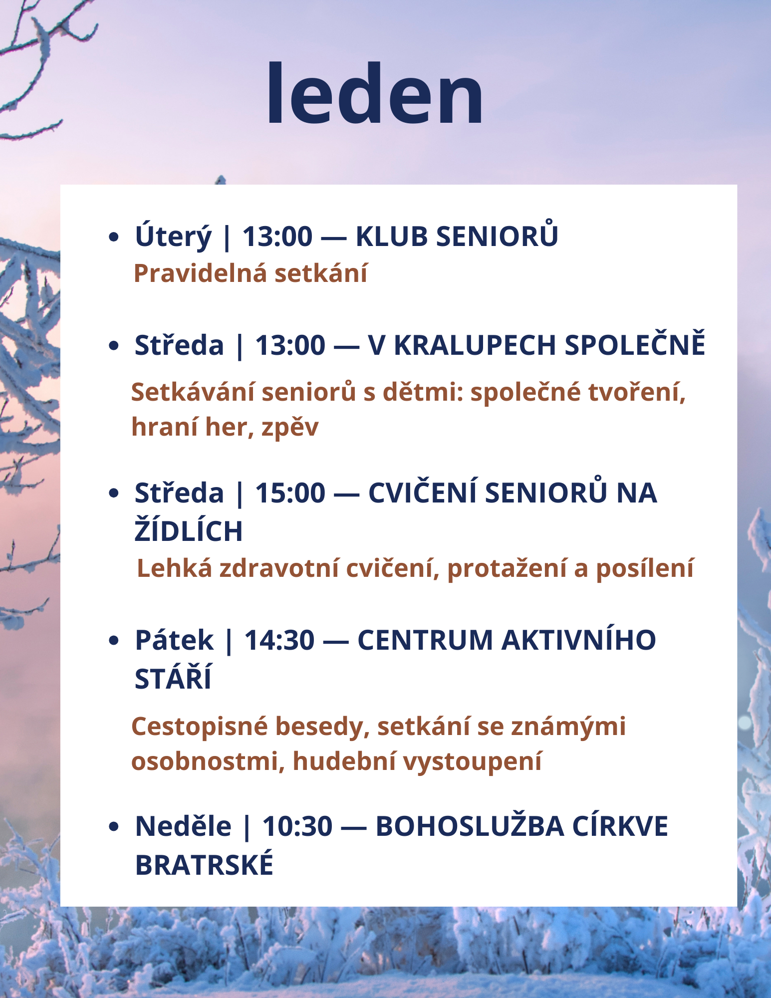 Prosinec přináší nový měsíc plný setkávání, tvoření a inspirace! 🎄 Přijďte si s námi užít předvánoční atmosféru, zapojit se do tvořivých dílen...