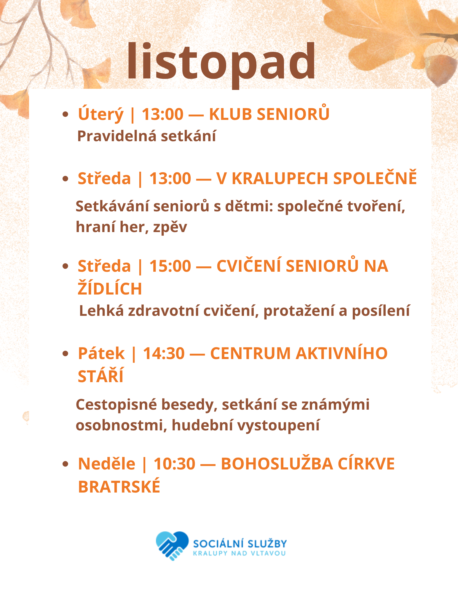 plný zajímavých činností a setkávání. 🗓️ Těšíme se na tvoření, pohyb i inspirativní besedy. Nahlédněte do našeho