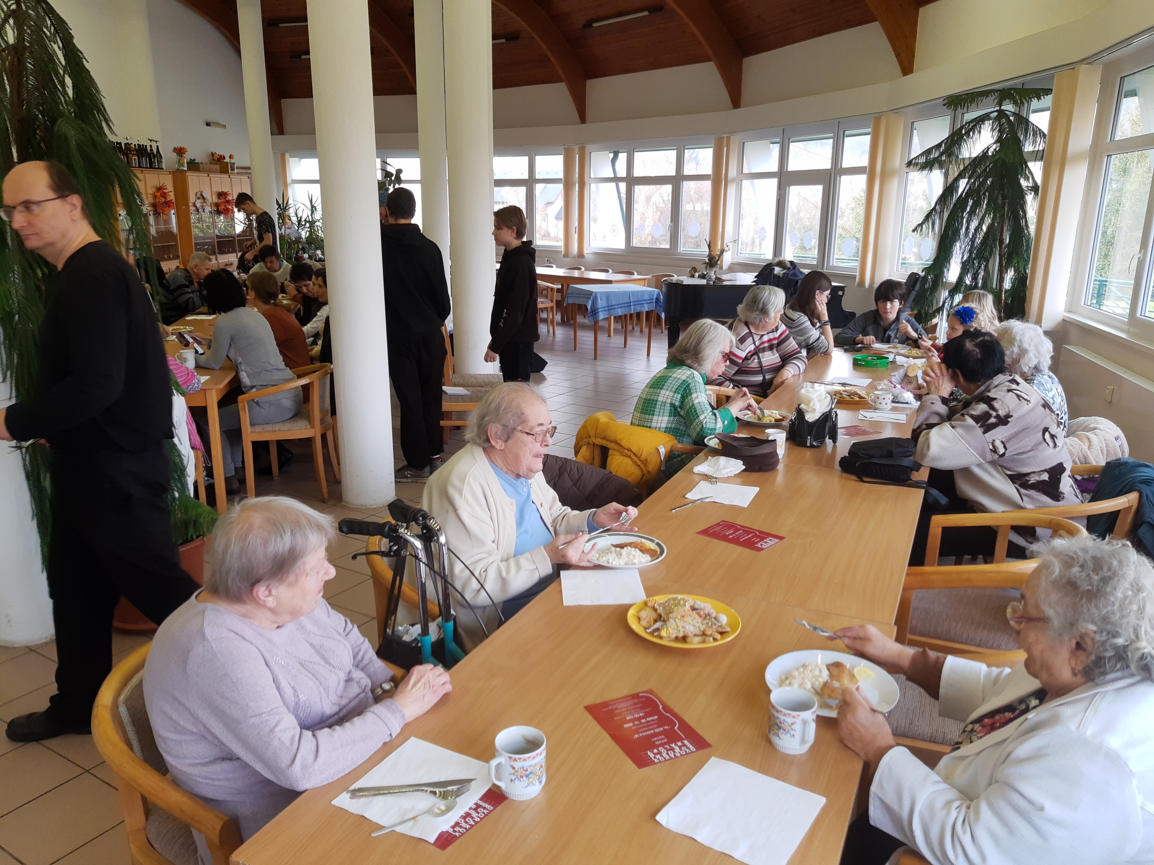 S napětím jsme očekávali bohoslužbu na Boží hod na novém místě. Chválící skupinka v rodinné sestavě Novotných – klavír, bicí, kontrabas, saxofon, kytara a perkuse rozčísla poklidnou vánoční náladu seniorského domu spirituálem „V Betlémě se ozývá“, a pak se bohoslužba rozjela naplno s vánočními písněmi za zpěvu Járy Šímy a doprovodu Marty Brou. Živá svědectví z posledních dnů, jak Hospodin zachraňuje nás obyčejné lidi, podtrhly evangelijní zvěst o sestoupení Boží přítomnosti z nebe v Pánu Ježíši Kristu. U Večeře Páně, za zpěvu, v modlitbách i svědectvích jsme silně pociťovali, že Bůh je s námi – Immanuel! Ihned po bohoslužbě, díky kuchyni, která sousedí se sálem, jsme mohli nabídnout občerstvení a vánoční oběd všem zúčastněným. Tentokrát jsme si pozvali profesionálního kuchaře Zdeňka France, který přišel i se svou dvanáctiletou dcerou Kačenkou. Velmi je těšilo, že se mohli podílet na připravě vánočního menu pro osamělé seniory, rodiny emigrantů, matky samoživitelky a pro všechny účastníky naší bohoslužby. Škoda, že vrcholící epidemie respiračních onemocnění skrouhla účast skoro o třetinu. Přesto kolem pět a čtyřiceti lidí na bohoslužbě v Kralupech léta nepamatujeme. Na závěr se sluší poděkovat Pánu Bohu, ale i všem dobrovolníkům, kteří pomáhali a nebylo jich málo: Děkujeme!