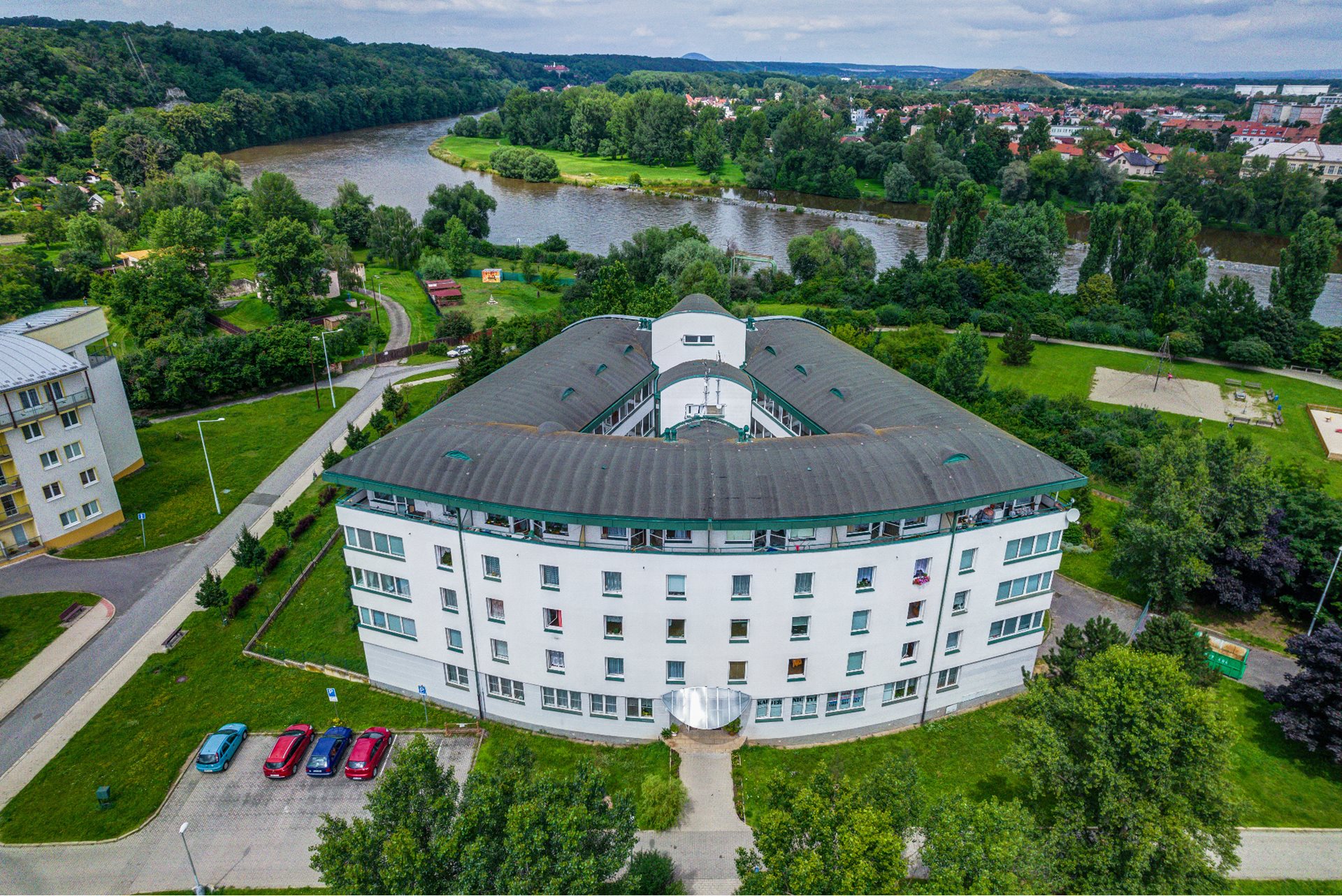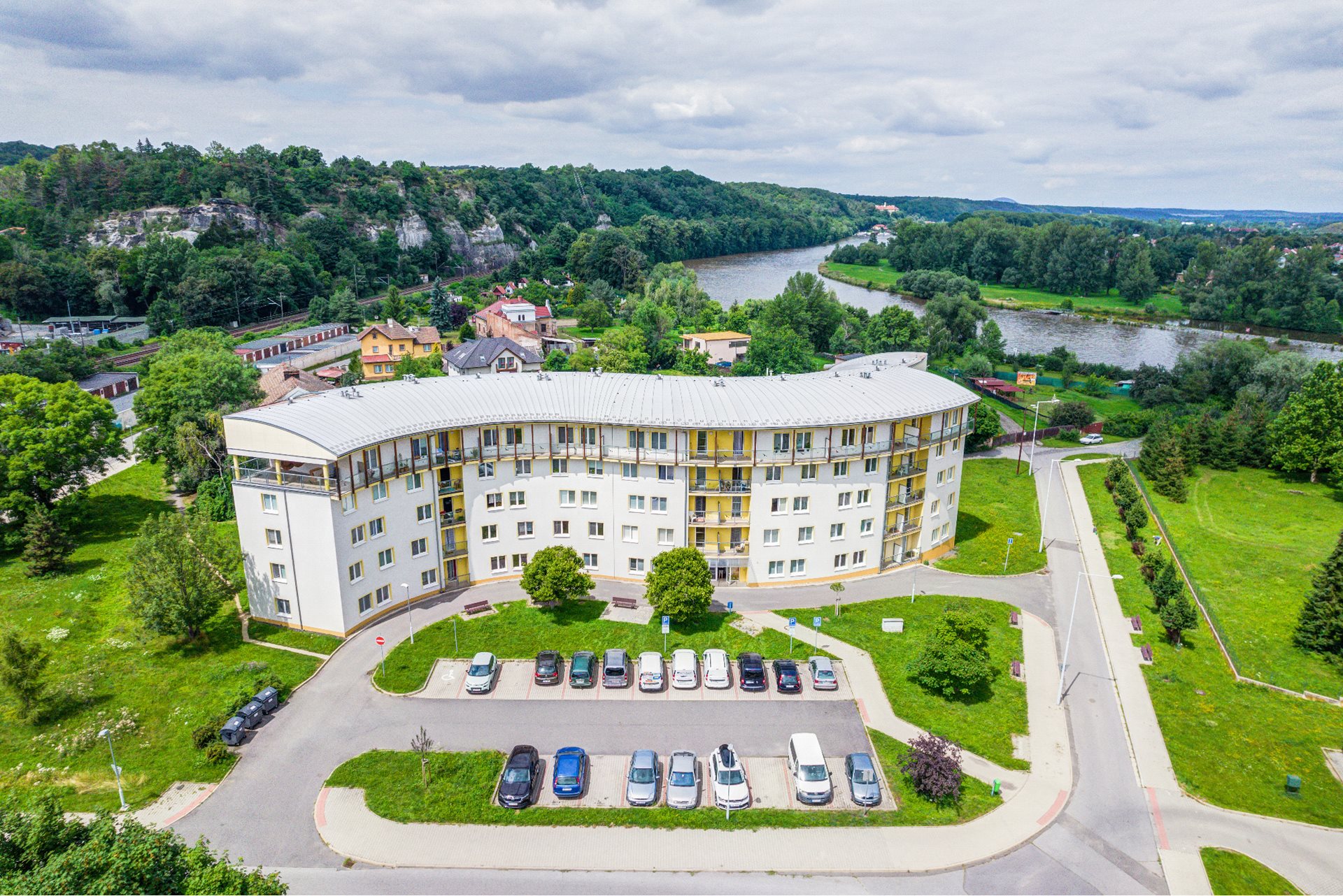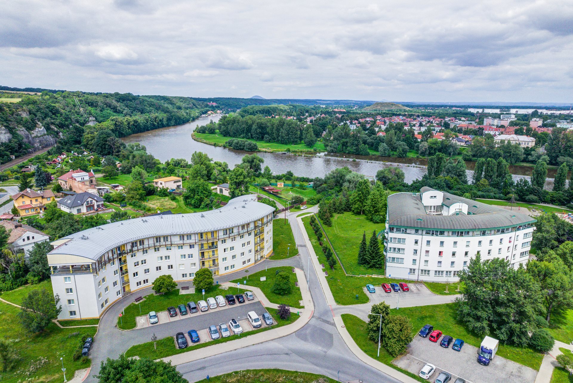 Domy s pečovatelskou službou se nacházejí v klidné části města nedaleko řeky Vltavy. Břehy řeky jsou místem vhodným k procházkám či relaxaci. Podél řeky lze snadno dojít do rodiště Antonína Dvořáka - Nelahozevsi, kde je možnost navštívit nejen jeho rodný dům, ale i krásný renesanční zámek. Před domy samozřejmě nechybí lavičky a parkoviště, které slouží nejen obyvatelům DPS, ale také návštěvníkům.