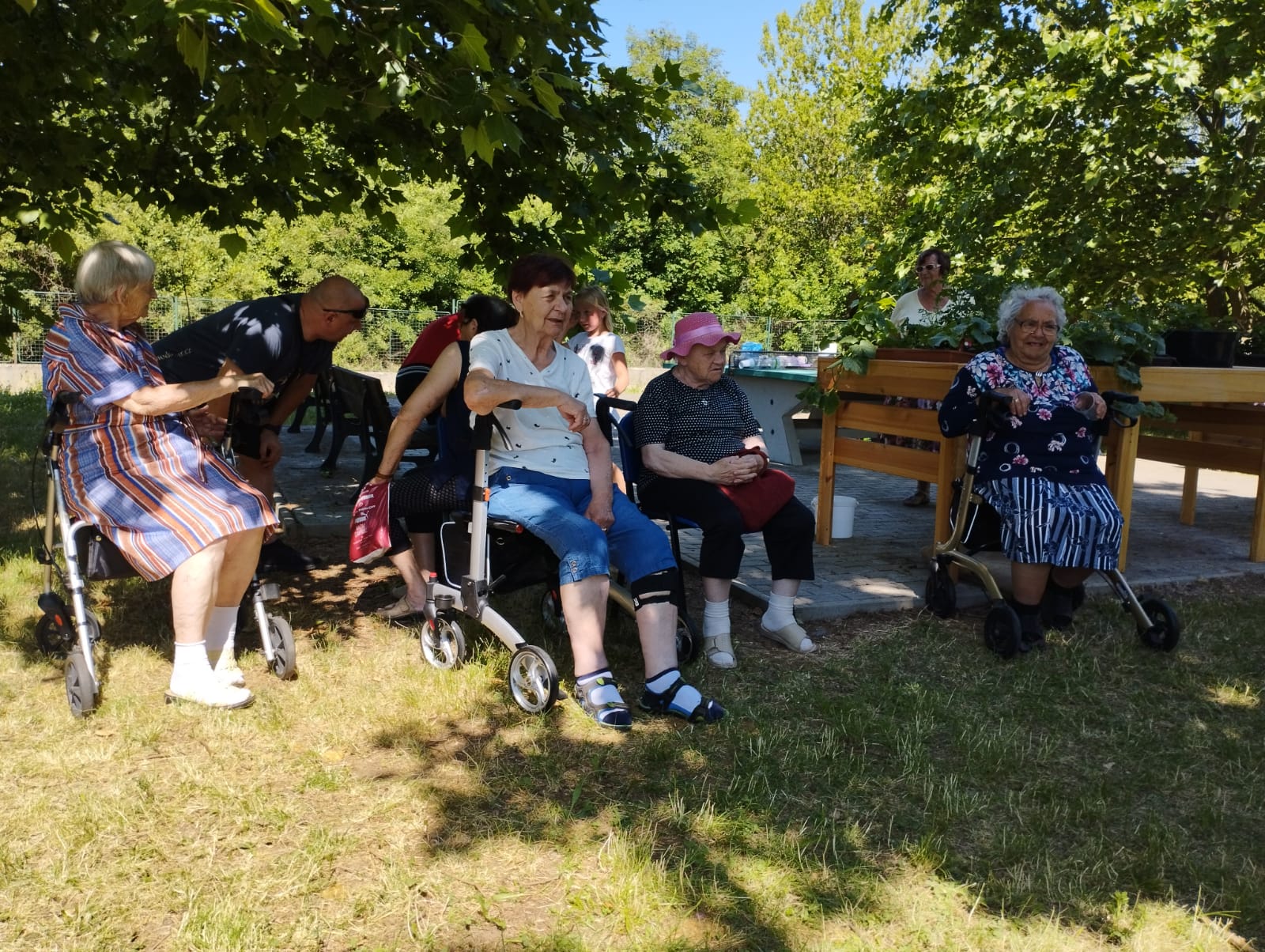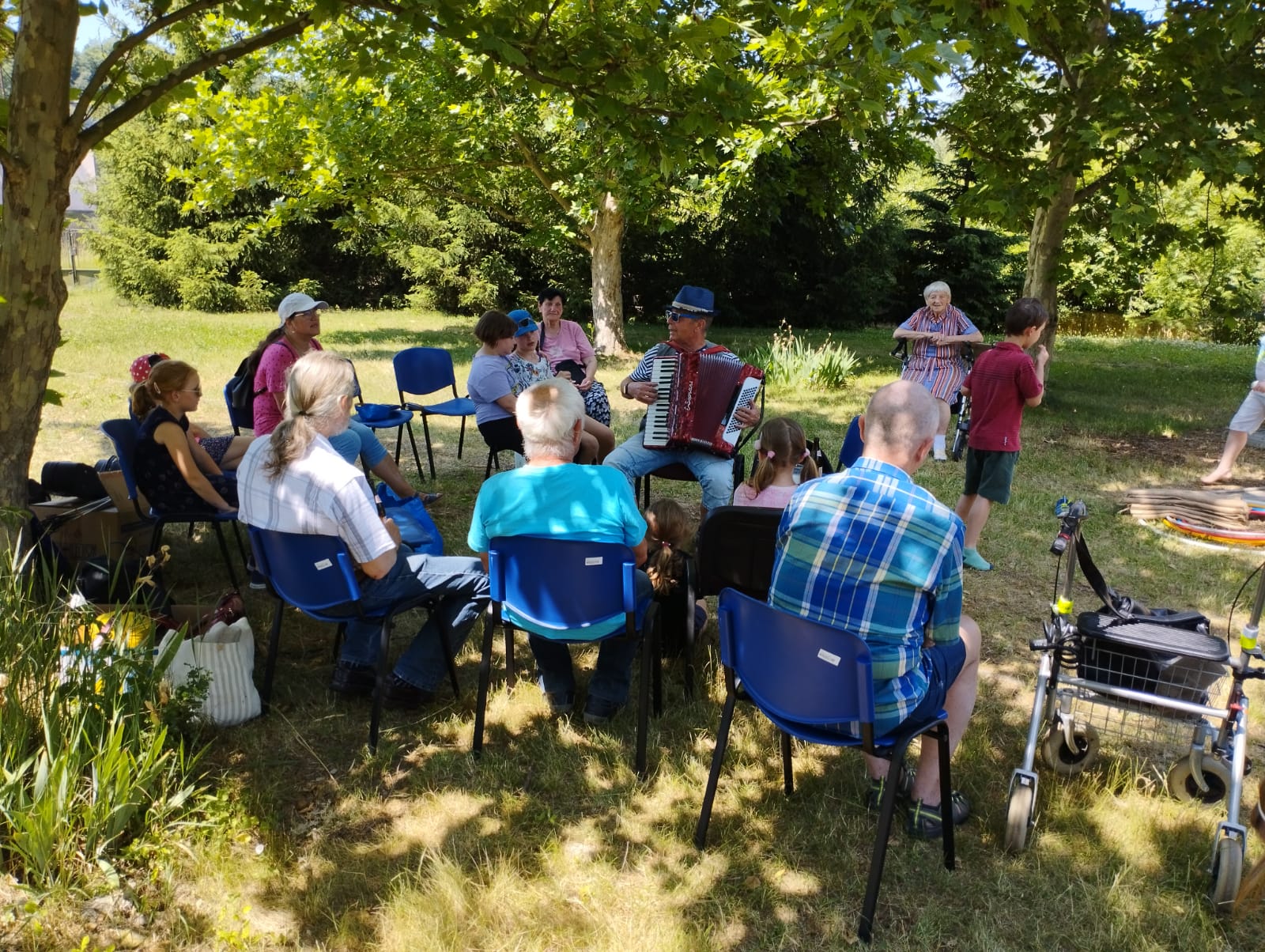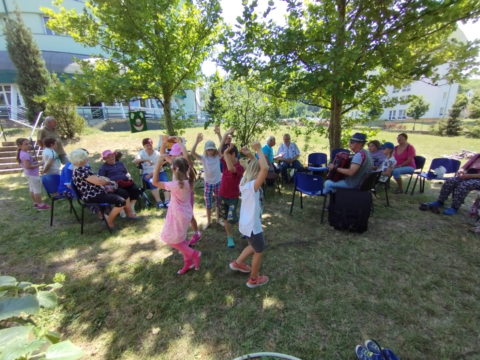 První etapu projektu jsme společně zakončili 15. 6. v zahradě. Počasí nám přálo, děti i senioři si užili letní pohodu, kterou doprovázely písničky harmonikáře. Děti si zasoutěžily o sladké odměny a jejich přátelé – babičky a dědečkové jim při soutěžích vydatně fandili.