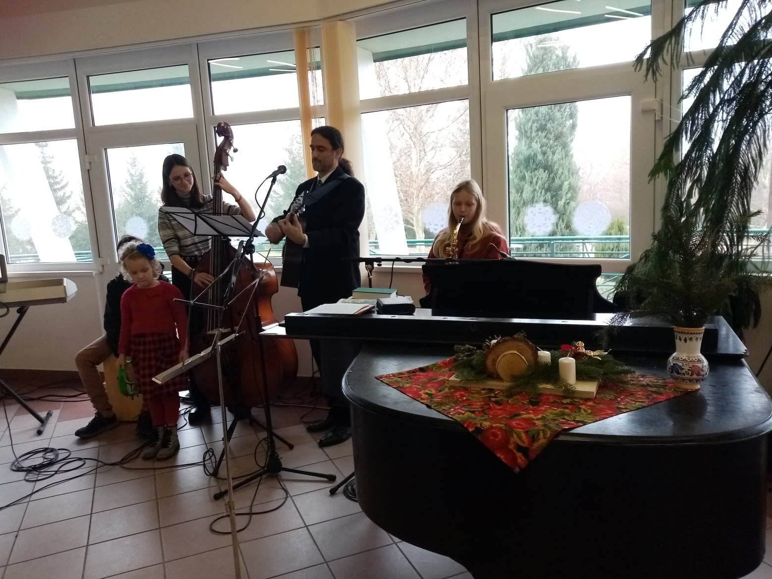 S napětím jsme očekávali bohoslužbu na Boží hod na novém místě. Chválící skupinka v rodinné sestavě Novotných – klavír, bicí, kontrabas, saxofon, kytara a perkuse rozčísla poklidnou vánoční náladu seniorského domu spirituálem „V Betlémě se ozývá“, a pak se bohoslužba rozjela naplno s vánočními písněmi za zpěvu Járy Šímy a doprovodu Marty Brou. Živá svědectví z posledních dnů, jak Hospodin zachraňuje nás obyčejné lidi, podtrhly evangelijní zvěst o sestoupení Boží přítomnosti z nebe v Pánu Ježíši Kristu. U Večeře Páně, za zpěvu, v modlitbách i svědectvích jsme silně pociťovali, že Bůh je s námi – Immanuel! Ihned po bohoslužbě, díky kuchyni, která sousedí se sálem, jsme mohli nabídnout občerstvení a vánoční oběd všem zúčastněným. Tentokrát jsme si pozvali profesionálního kuchaře Zdeňka France, který přišel i se svou dvanáctiletou dcerou Kačenkou. Velmi je těšilo, že se mohli podílet na připravě vánočního menu pro osamělé seniory, rodiny emigrantů, matky samoživitelky a pro všechny účastníky naší bohoslužby. Škoda, že vrcholící epidemie respiračních onemocnění skrouhla účast skoro o třetinu. Přesto kolem pět a čtyřiceti lidí na bohoslužbě v Kralupech léta nepamatujeme. Na závěr se sluší poděkovat Pánu Bohu, ale i všem dobrovolníkům, kteří pomáhali a nebylo jich málo: Děkujeme!