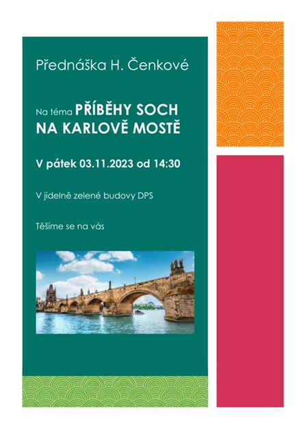 Paní Hurychová pro vás dojednala přednášku na téma PŘÍBĚHY SOCH NA KARLOVĚ MOSTĚ