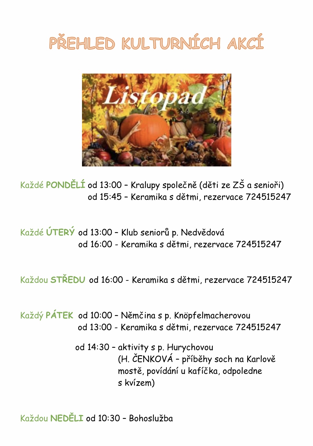 Každé ÚTERÝ od 13:00 – Klub seniorů p. Nedvědová
