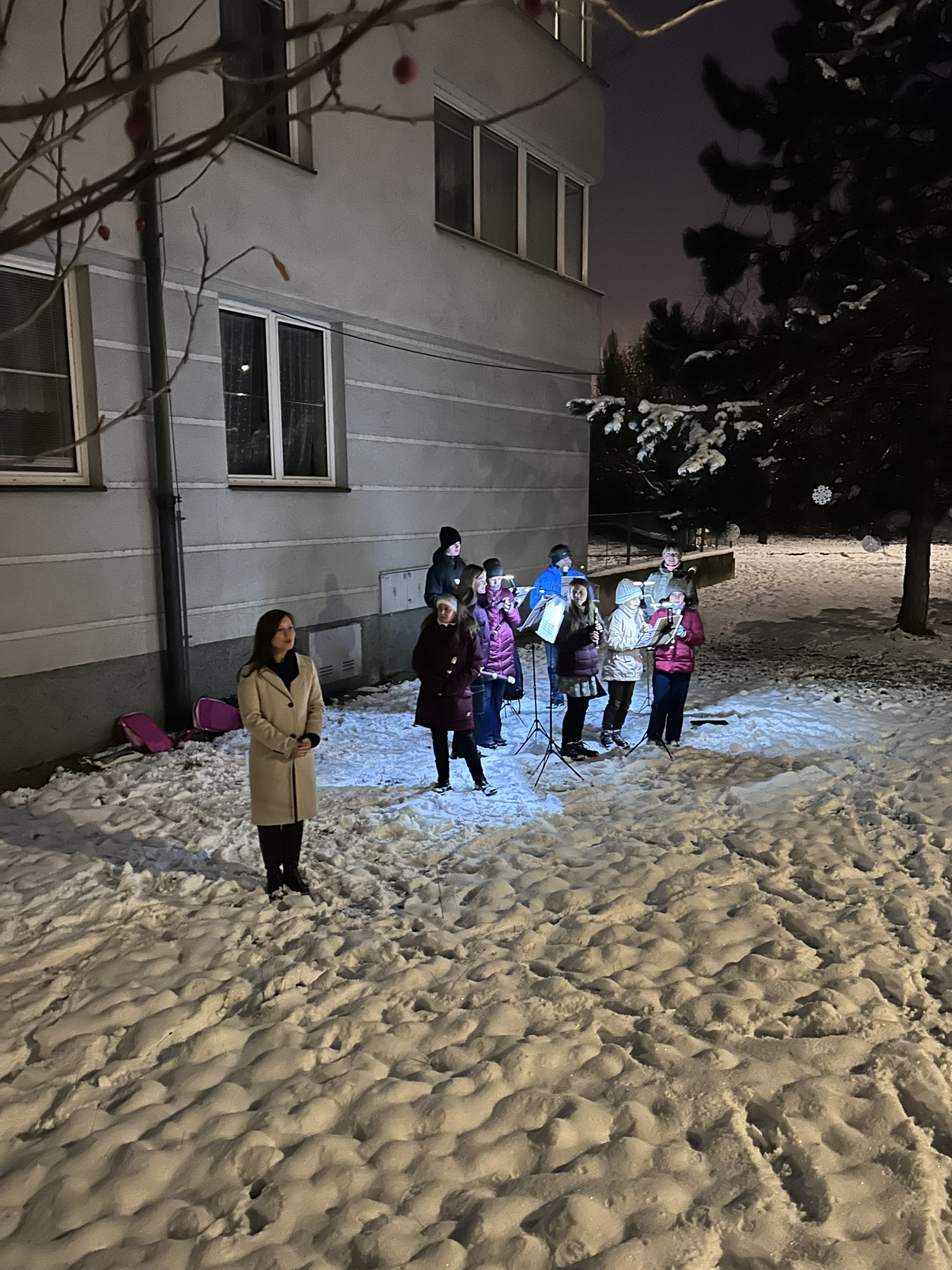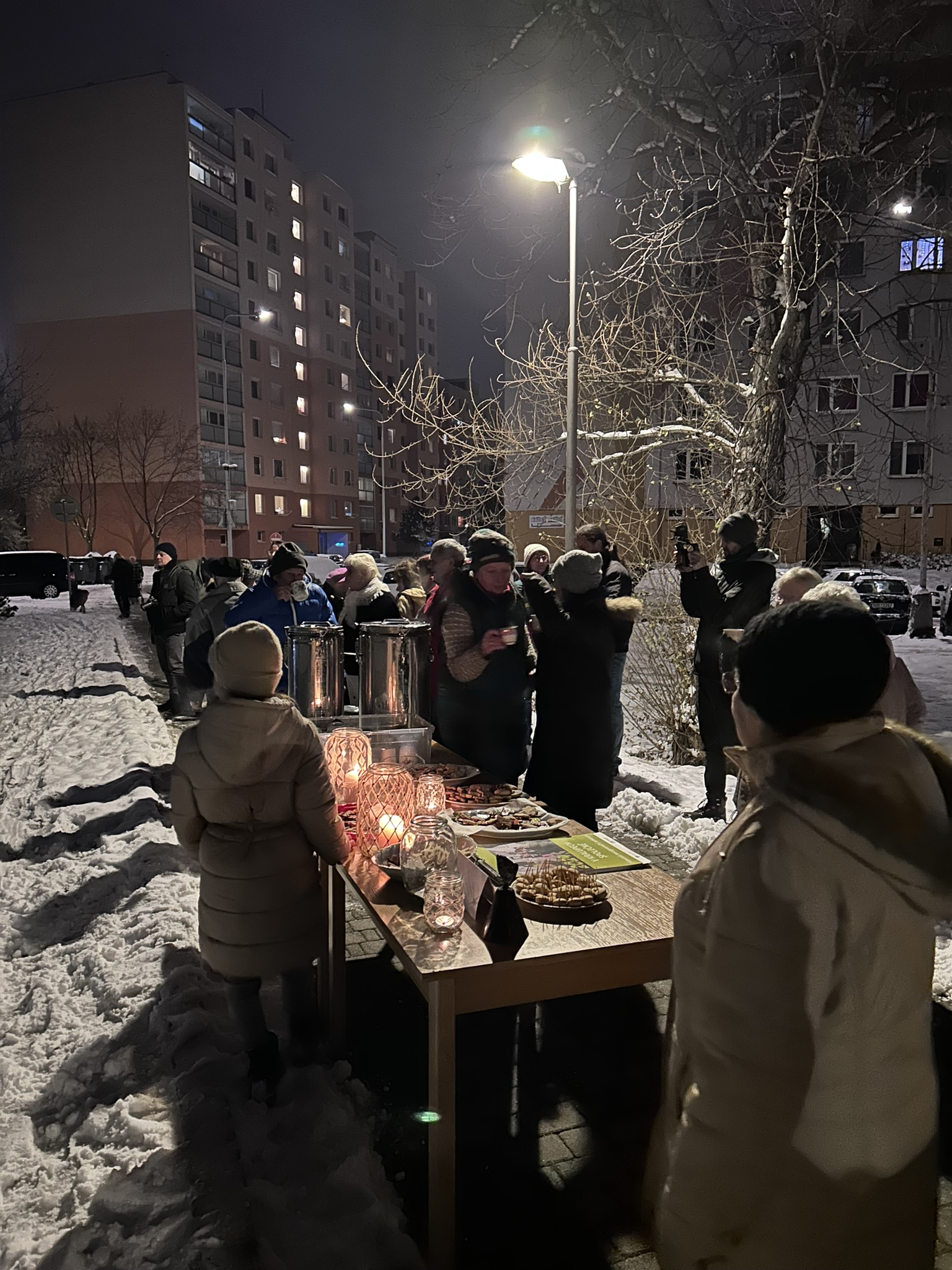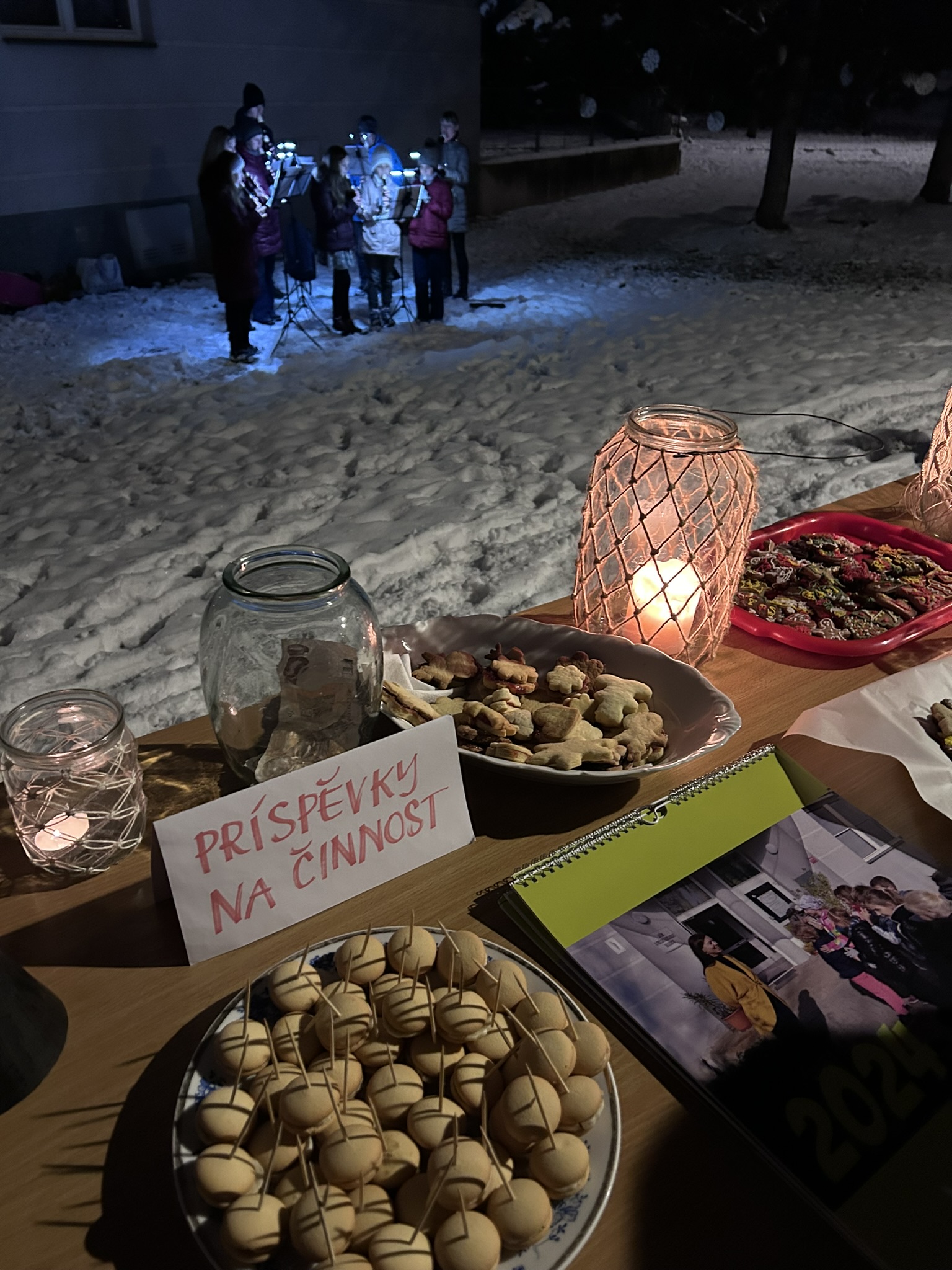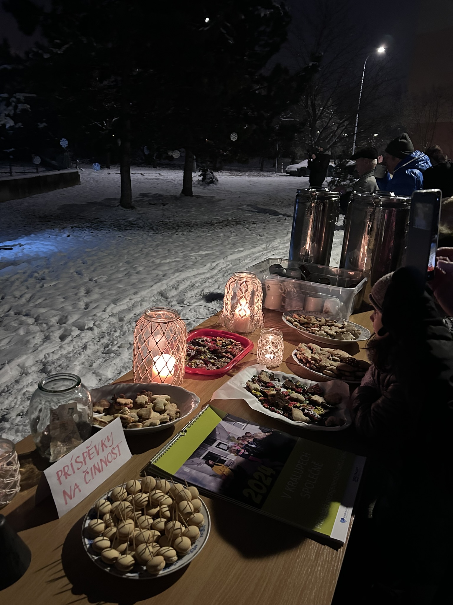 Při rozsvícení stromečku nám zahrály děti z Kralupské Základní umělecké školy, Renata Němečková a Dagmar Knöpfelmacherová rozdávaly čaj a svařák a k ochutnání bylo napečené cukroví.