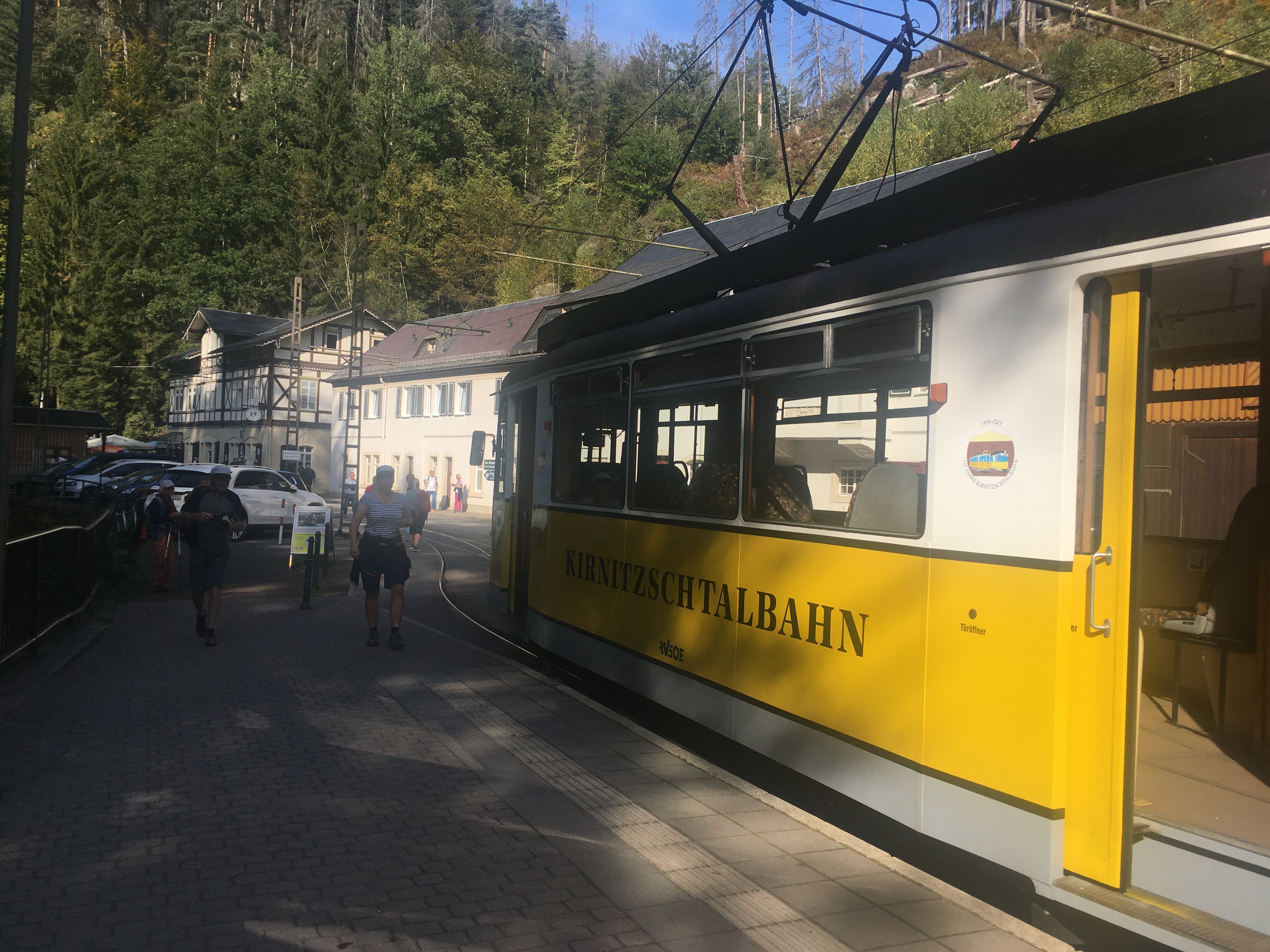 Prošli lázeňský park a nasedli na historickou úzkokolejnou tramvaj. Na konečné hledali avizovaný vodopád. Nebyl to sice žádný monumentální proud vody, ale začínalo tam východisko k cestám do skalnatých útvarů Saského Švýcarska. Po pěkné procházce se potěšili výhledy a občerstvením. Opět si ověřili, že cestování nemusí být náročné a nákladné. Člověk se potká s přátelským a srozumitelným prostředím sousední země a přiveze si pěkné zážitky.