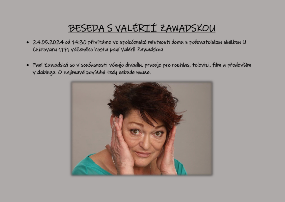 24.05.2024 přivítáme váženou návštěvu, paní Valérii Zawadskou