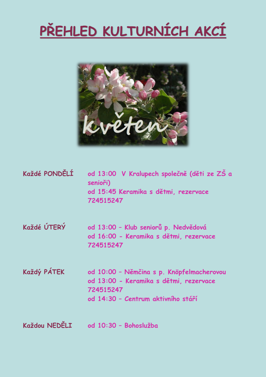 od 13:00 – Klub seniorů p. Nedvědová